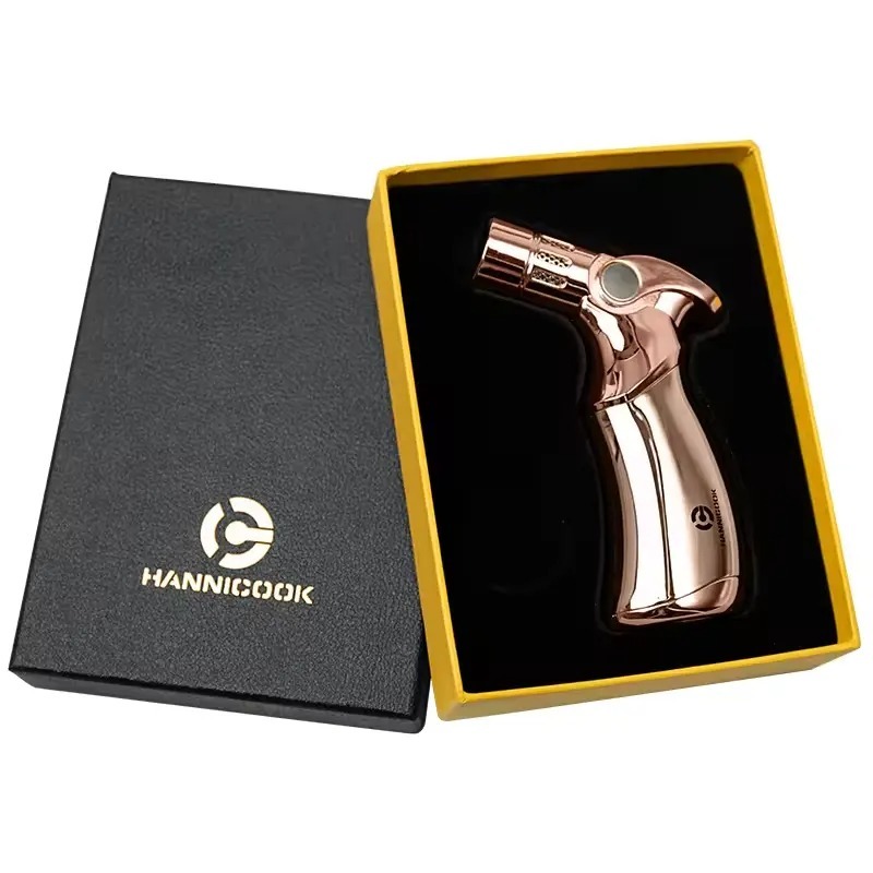Predstavljamo vam ekskluzivni Hannicook metalni upaljač u prefinjenom rose gold izdanju. Ovaj premium upaljač izrađen je od kvalitetnog metala koji garantuje dugotrajnost i pouzdanost. Sa četiri snažna jet plamena, idealan je za sve prilike koje zahtevaju pouzdan izvor vatre.