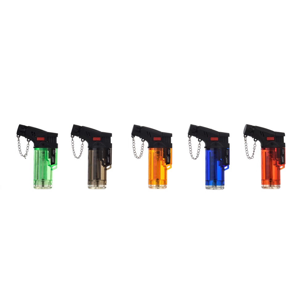 Profesionalni turbo upaljač sa providnim kućištem za lako praćenje nivoa gasa. Poseduje snažan brener plamen, jednostavno se puni i idealan je za kuhinjsku upotrebu, kampovanje i zanatske radove.