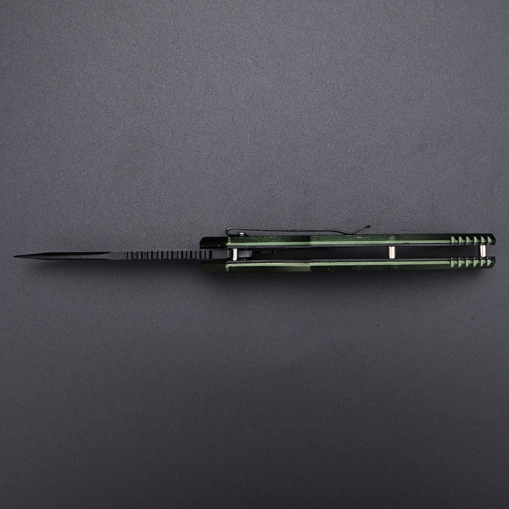 Ergonomski oblikovana aluminijumska drška u atraktivnoj zelenoj boji pruža siguran i udoban hvat. Kompaktne dimenzije čine ga idealnim za svakodnevno nošenje i outdoor aktivnosti. Savršen izbor za ljubitelje kvalitetnih džepnih noževa koji traže pouzdanost i dugotrajnost.