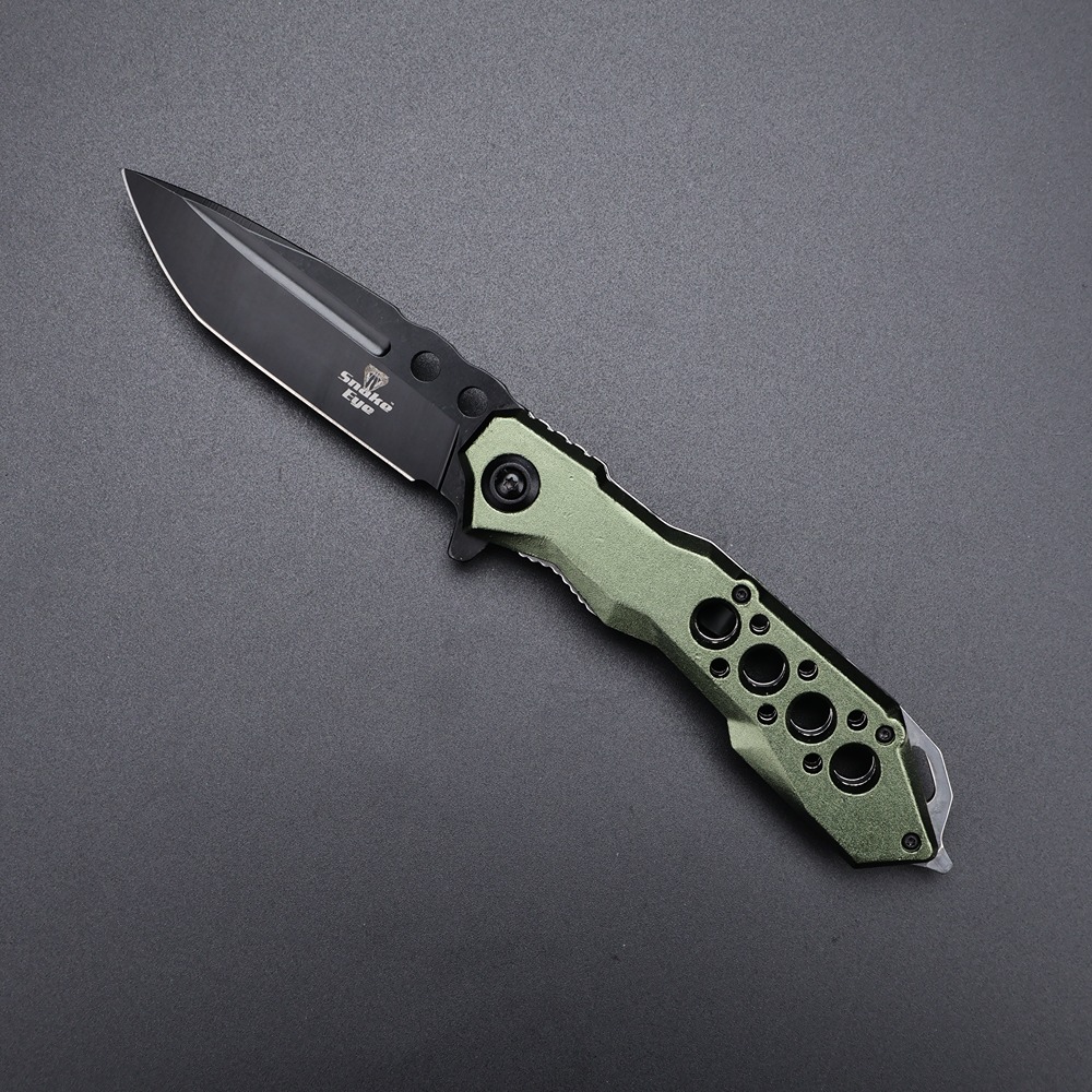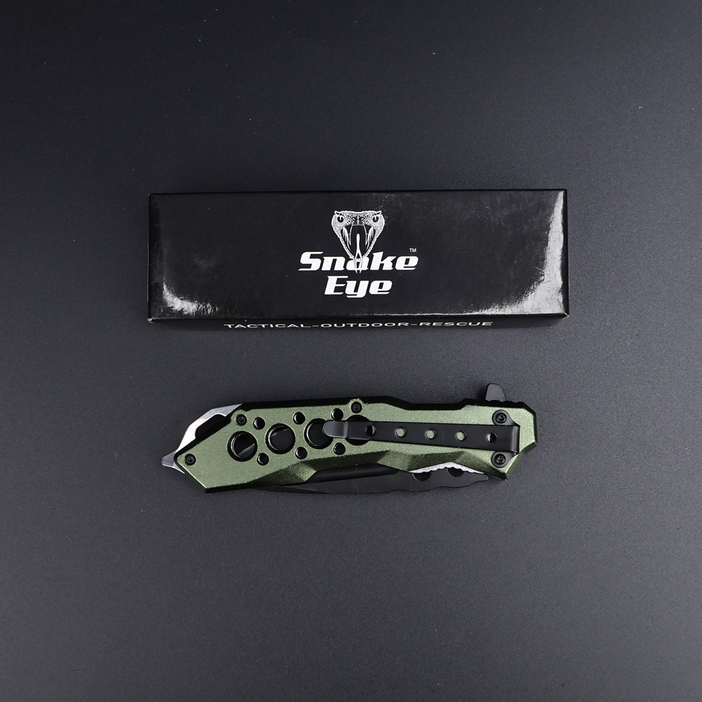 Predstavljamo vam Snake Eye sklopivi džepni nož u atraktivnoj zelenoj boji, model SE-0408GN. Ovaj praktični nož sa spring assisted mehanizmom kombinuje moderan dizajn sa pouzdanom funkcionalnošću, što ga čini idealnim izborom za svakodnevno nošenje.