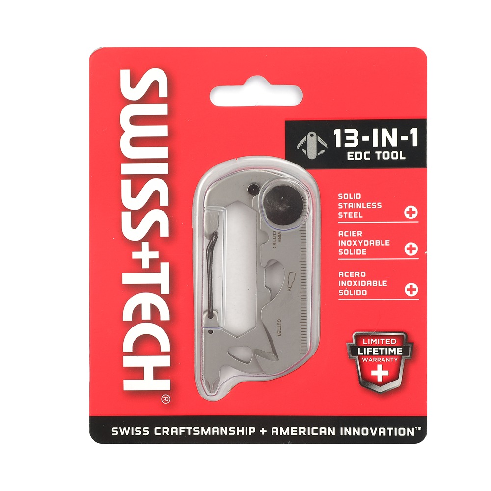 Swisstech 13u1 EDC alat kombinuje praktičnost, kvalitet i višestruku funkcionalnost u jednom kompaktnom dizajnu. Zahvaljujući karabiner kopči, uvek će vam biti pri ruci, bilo da ga zakačite za ranac, pojas ili privezak za ključeve.