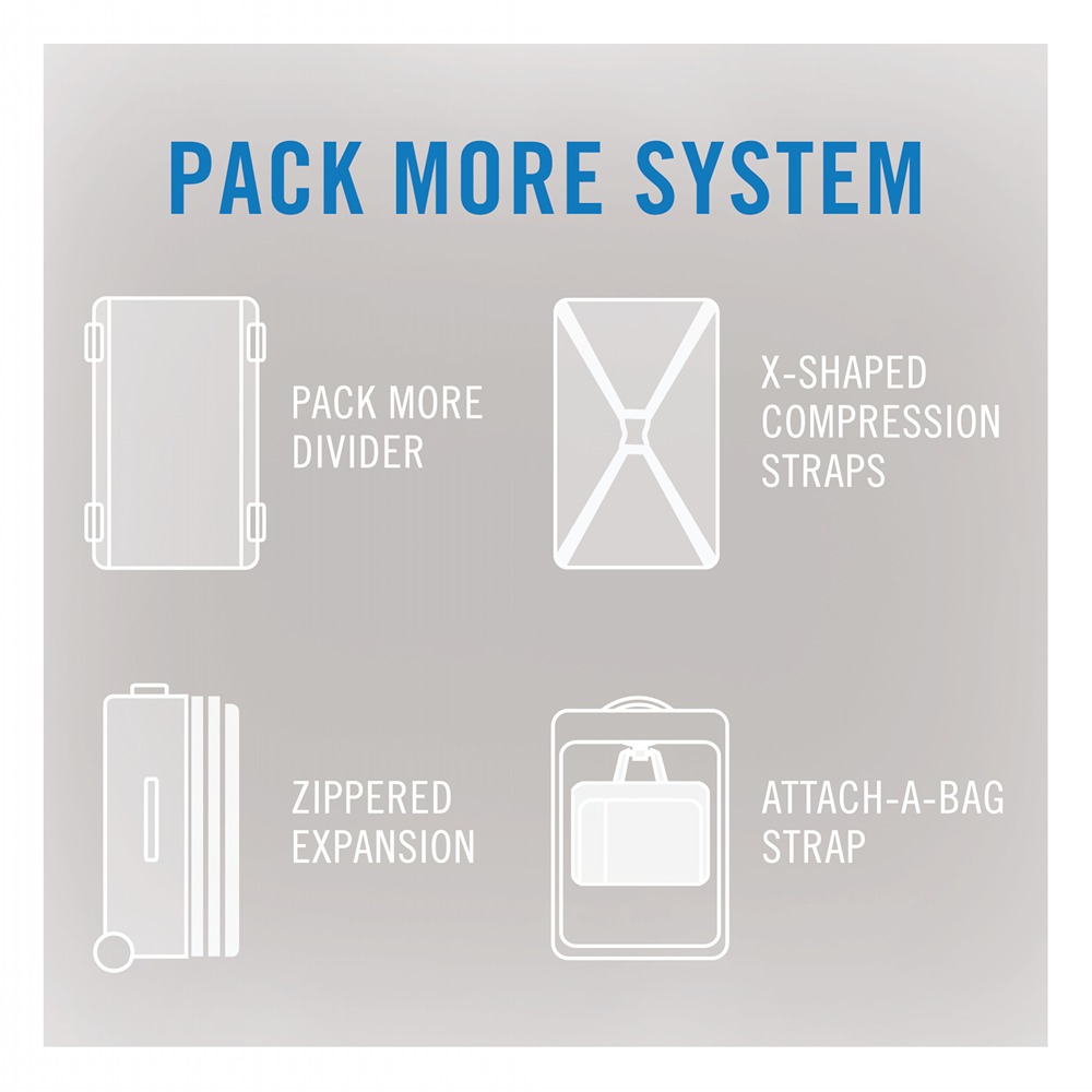 – Inovativni „Pack More“ sistem nudi više mogućnosti organizacije: podesivi separator, X-oblikovane kompresione trake, mogućnost proširenja sa rajsferšlusom i odvojiva traka za pričvršćivanje dodatne torbe.