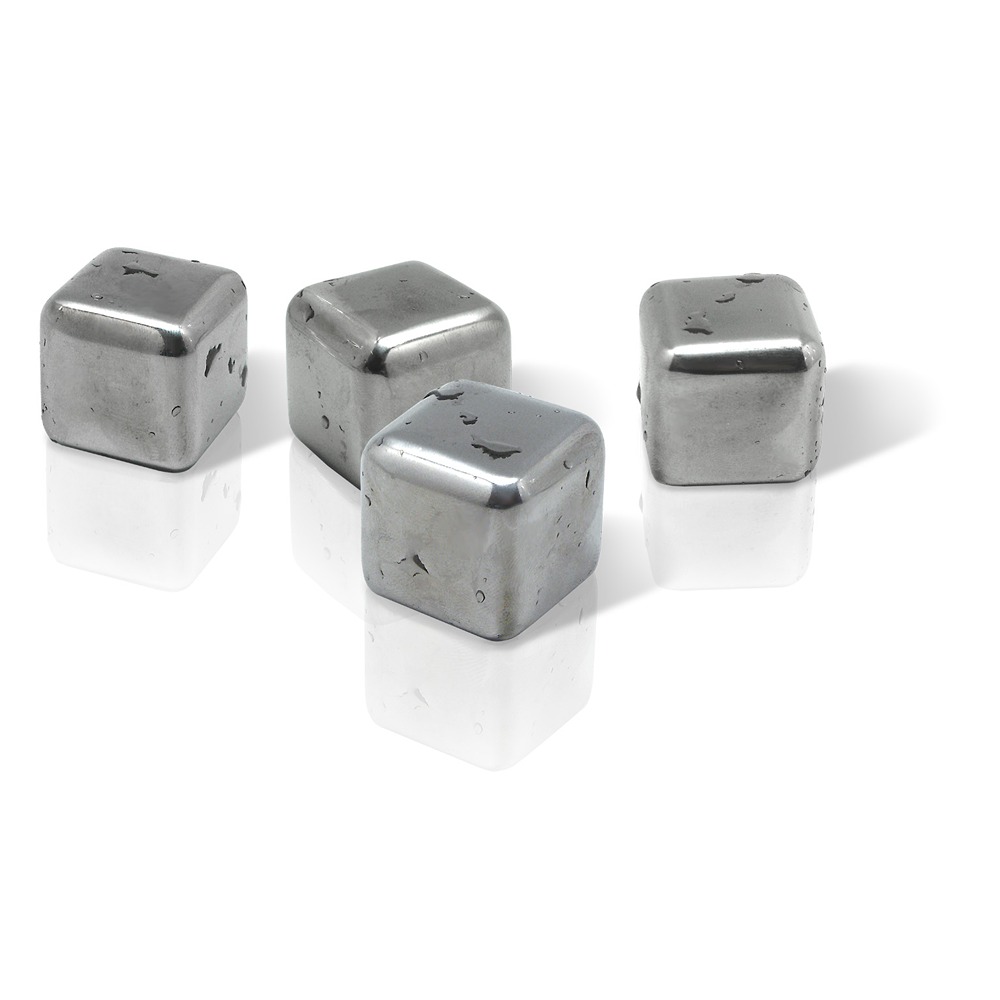 Premium metalne kocke za hlađenje od nerđajućeg čelika održavaju vaše piće savršeno hladno bez razblažavanja. Set od 4 višekratne kocke idealan je za viski, džin, vino i koktele.