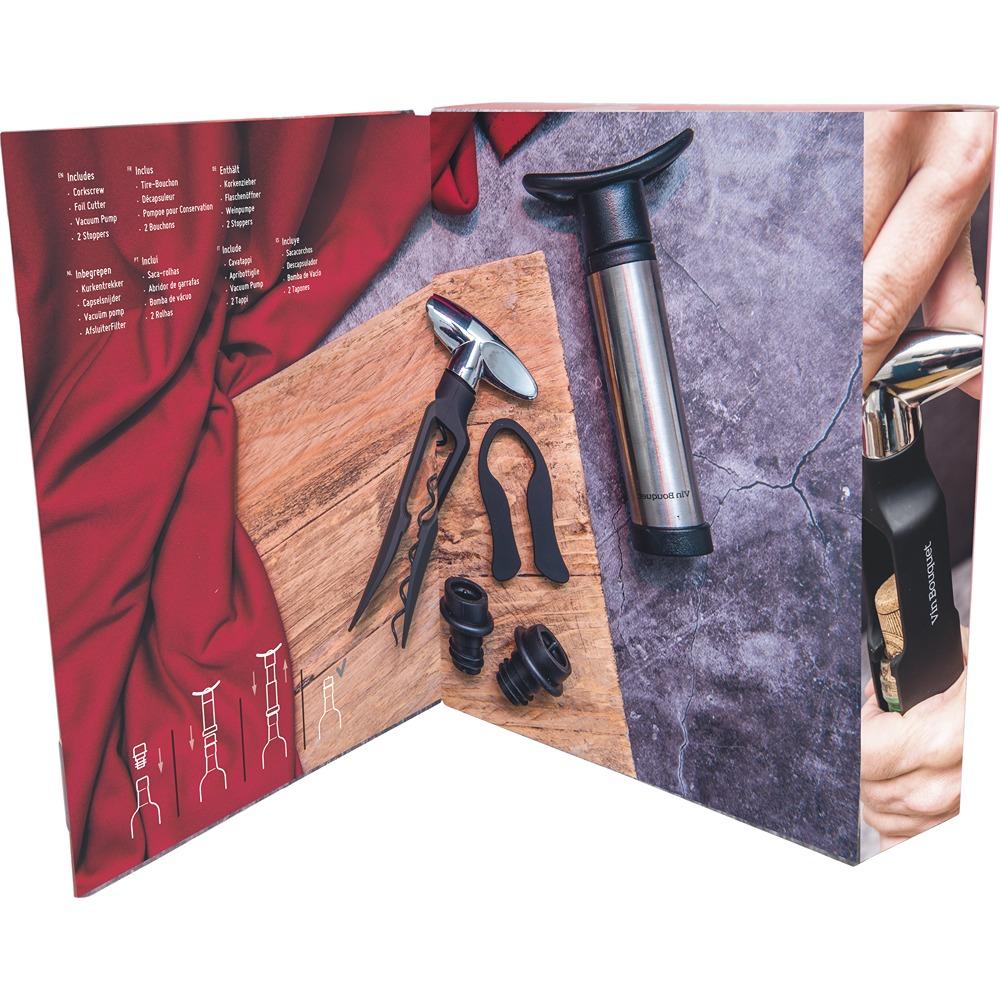 Uživajte u savršeno očuvanom vinu uz profesionalni Vin Bouquet set koji objedinjuje sve neophodne alate za otvaranje i čuvanje vina.